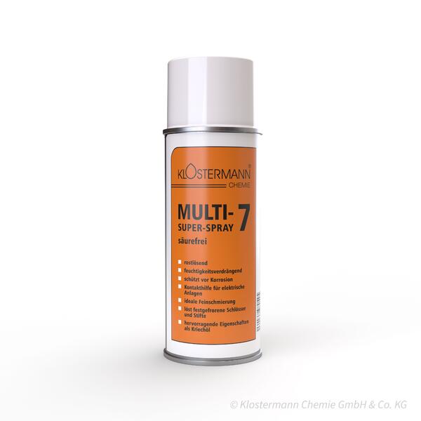 A spray for seven applications: rust remover, contact spray, defroster, moisture repellent, corrosion protection, penetrating oil and fine lubrication.